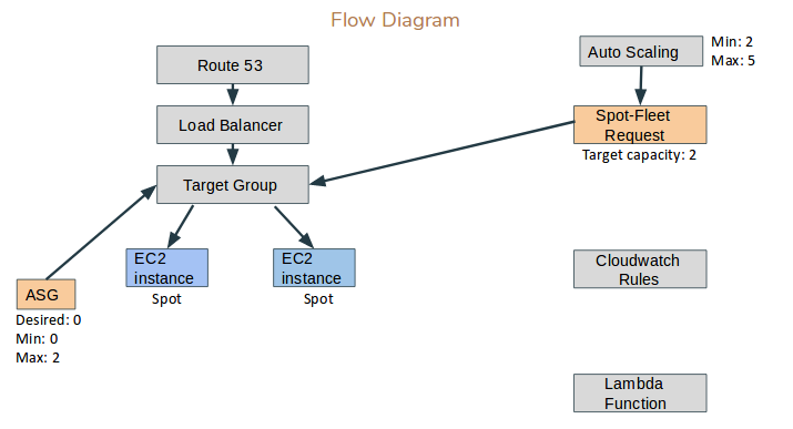 We will create all the components related to this project(as shown in figure above). We will also go through how best we can create spot fleet request wisely by choosing the parameters that fits for our purpose and prone to less interruption. I assume that you have previously created VPC, Subnets(at least two), Internet Gateway and have associated it with VPC, Target Group, AMI(nginx server running at 80), Launch Configuration with the same AMI, ASG with launch configuration you created, and associating the tags for the instance(on-demand), also associating the target group you created, Load Balancer(listening on http protocol and directing to target group you created), route53(optional -where one address is mapped to Load Balancer DNS name).