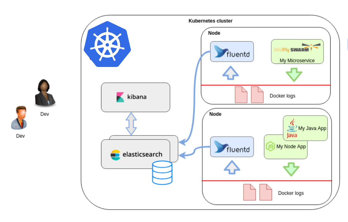 In Kubernetes, containerized applications that log to stdout and stderr have their log streams captured and redirected to JSON files on the nodes. The Fluentd Pod will tail these log files, filter log events, transform the log data, and ship it off to the Elasticsearch cluster we deployed earlier.