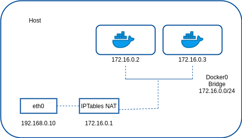 Bridge:- The bridge network is a private internal default network, built on the host by the docker. Each container has an internal IP address and can reach other container using this internal IP. Bridge networks are typically used when the applications run in containers needs to communicate on standalone setup.