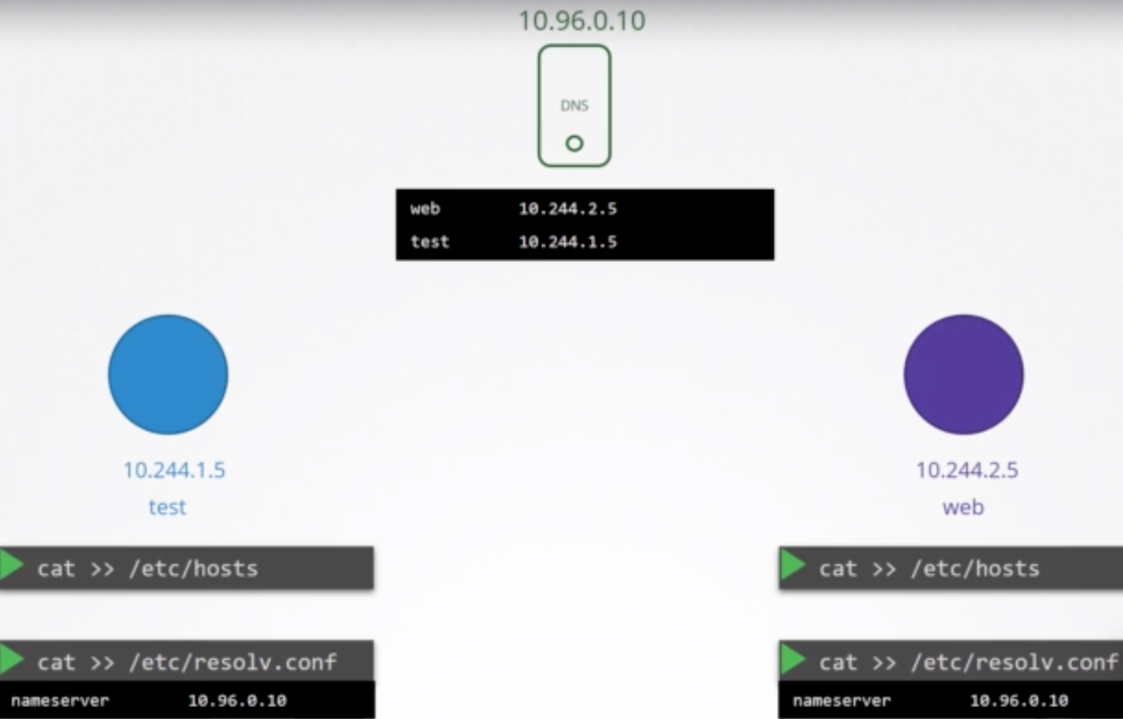 Well, you don’t need to care about this because DNS entries have been handled by the kubelet component.