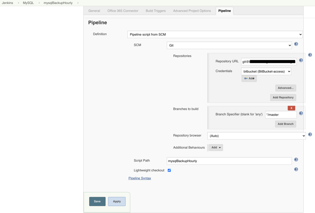 Step4: Create the 3 Jobs as type ‘Pipeline’ for automated backups namely ‘mysqlBackupHourly’, ‘mysqlBackupWeekly’ & ‘mysqlBackupMonthly’ using the Jenkinsfiles, as shown below. Make sure you already have pushed these Jenkins files to your favorite Git repository