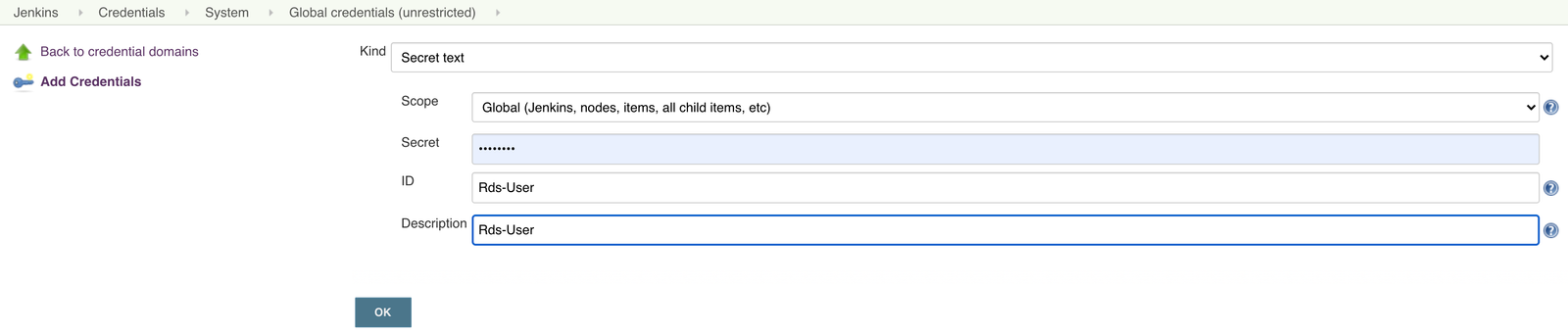 Open the Jenkins & navigate to credentials → Systems→ Global credentials → Add Credentials and select kind as ‘Secret text’.