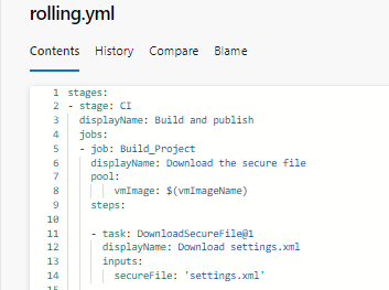 - If you would like to use the template at the stage level the code would look something like this , a stage level template will comprise of all the steps in a single yaml file