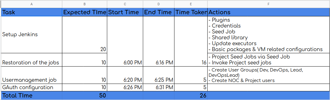 We have achieved all of the above-mentioned tasks in 30 minutes using Jenkins Ansible role, seed jobs, and user management role. GAuth is a manual part so it could take extra time depending on you.