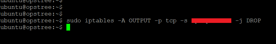 $ iptables -A OUTPUT -p tcp -d X.X.X.X/XX -j DROP
