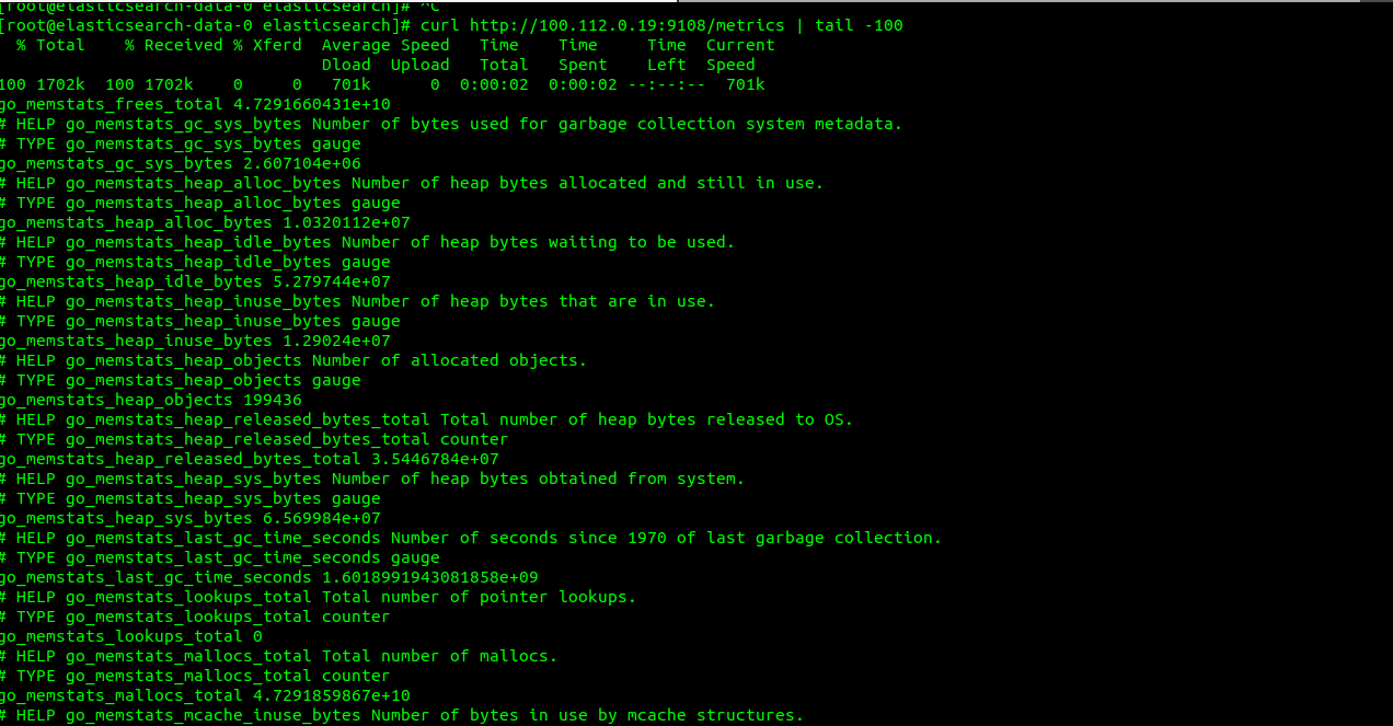 helm install elasticsearch-exporter --set es.uri=http://elasticsearch-node:9200 stable/elasticsearch-exporter