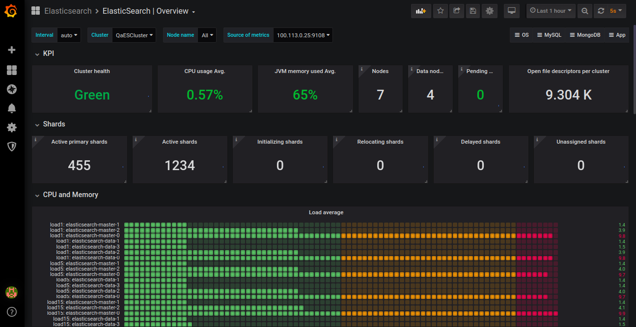 So we have successfully export elasticsearch cluster metrics to Prometheus. Now we use these metrics to create grafana dashboards