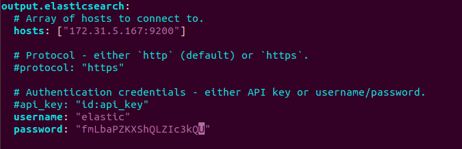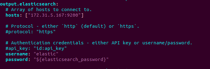 Now our password is stored in elasticsearch_password variable. Let’s use this variable in the config file.