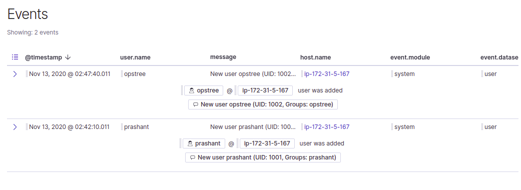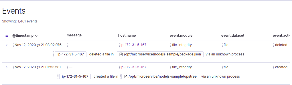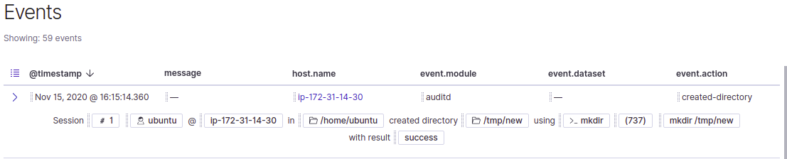 Example:- After audit beat, I installed Nodejs and tree using apt-get. Let’s see our relevant data.