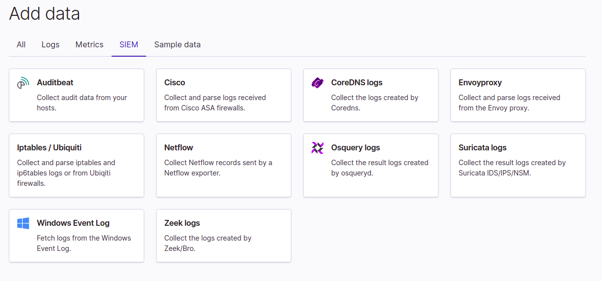 You can use Elastic SIEM to centrally manage your events from other exporters as shown in Figure 24.