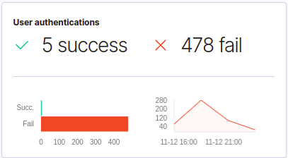 Here we can see that there have been 5 success login attempts and 478 failed attempts made for both hosts.