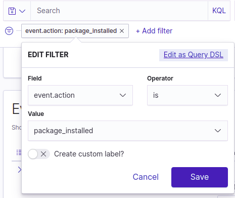 Since the most important part of SIEM is events, we can use KQL(Kibana query Language) and add filters to go through them.
