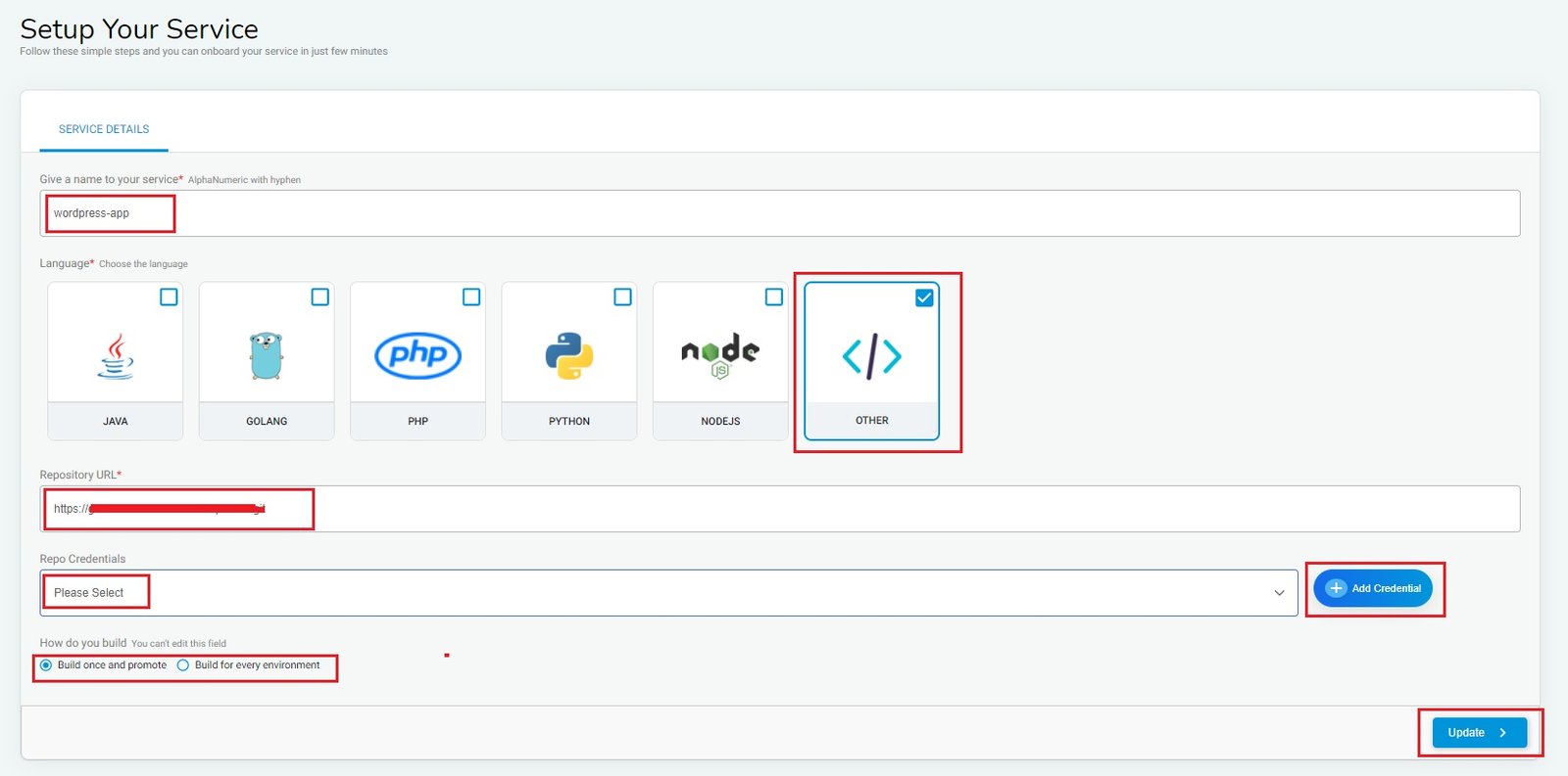 Note: This is one time setup for each service & deployment and doesn’t take much time. Each service has its own interface where we can update/modify it.