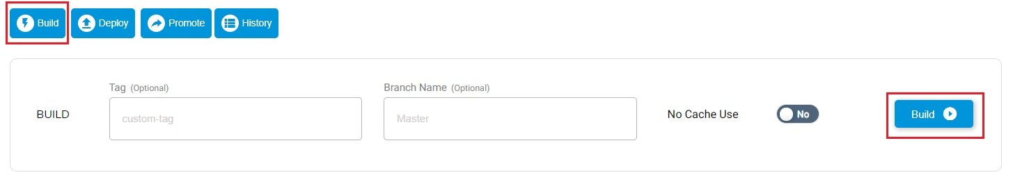 On pressing build, it will ask for the tag name [ optional ] and branch [ optional & default branch that we already set-up while configuring service].