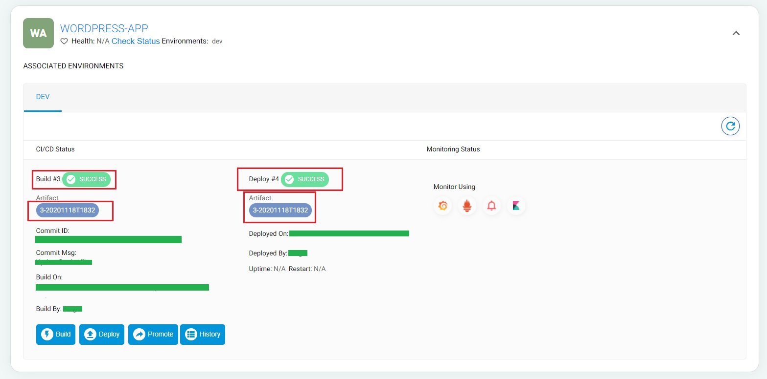 For WordPress containers, I am using a few build environments like WordPress username, password, database name, and database URL which I injected through BuildPiper.