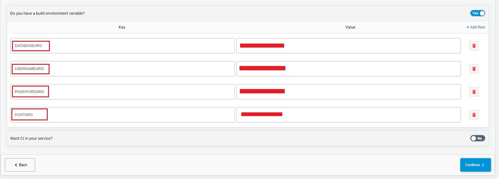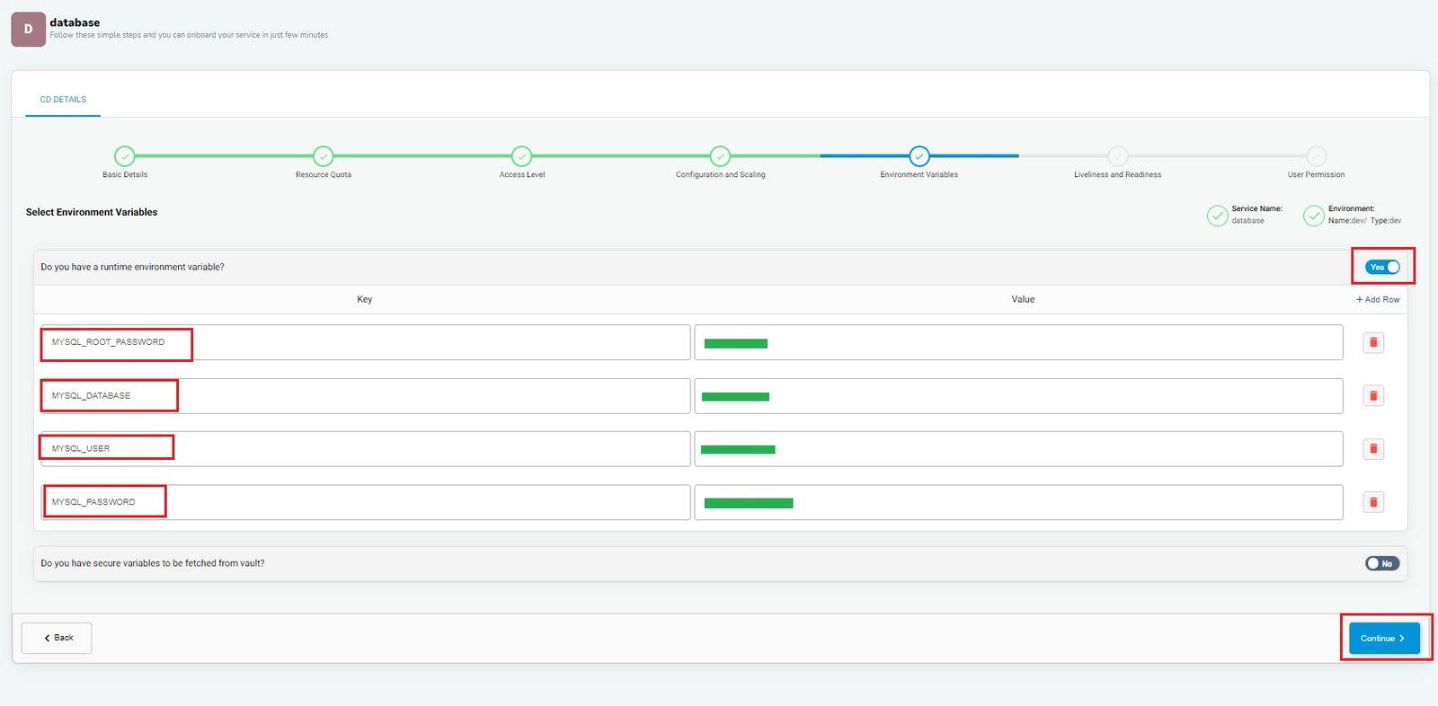 BuildPiper gives the flexibility to use environment variables like setting up build & deploy environment variables. MySQL database contains some deploy environment variables like MySQL username, default root password, etc.