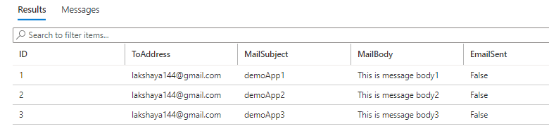 (For demo purpose, I am sending 3 mails to my mail address with different subject and body)