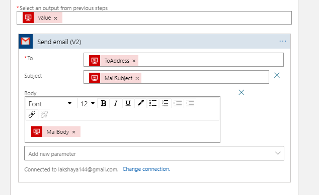 Step 15: Enter the details from Dynamic content. We will not be doing hard-coding 🙂