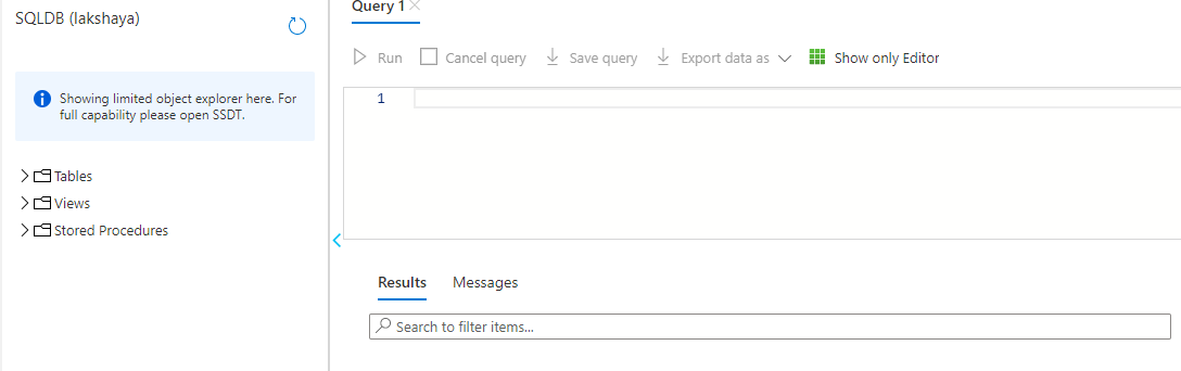 Step 3: Go to the SQL Database and click ‘Query Editor’.