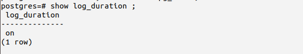 | Ensure ‘log_duration’ is enabled | off | on |