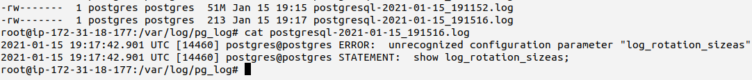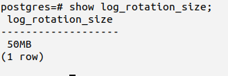 To show you an example we have deliberately set log_rotation_size to 50 MB.