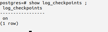 | Ensure ‘log_checkpoints’ is enabled | off | on |