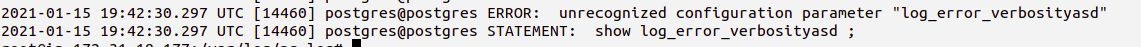 | Ensure ‘log_error_verbosity’ is set correctly | default | verbose |