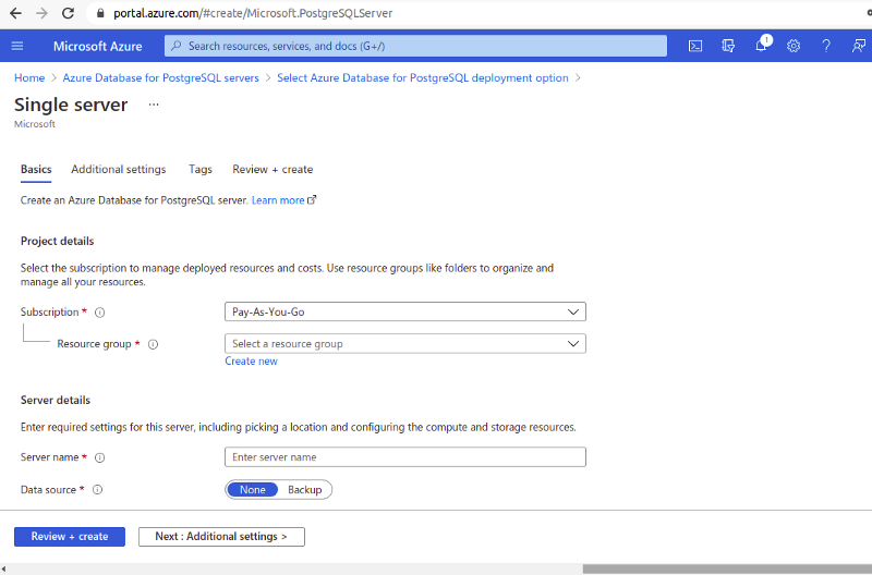 Now create a Azure Database for PostgreSQL which is managed by azure.