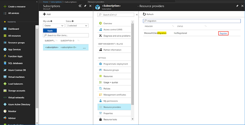 Register the Microsoft.DataMigration resource provider