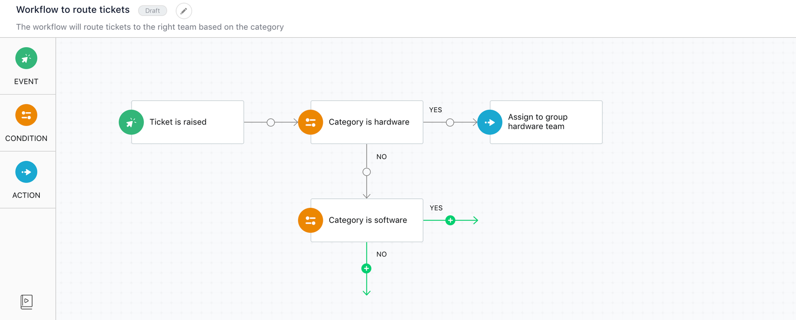 Workflow helps us to auto-assign tickets to the right person or a group. Workflow Automator helps to automate unvarying tasks and manual processes that you perform. It helps us to classify the tickets to the different teams. With the help of workflow Automator, you can route the tickets to the different teams.