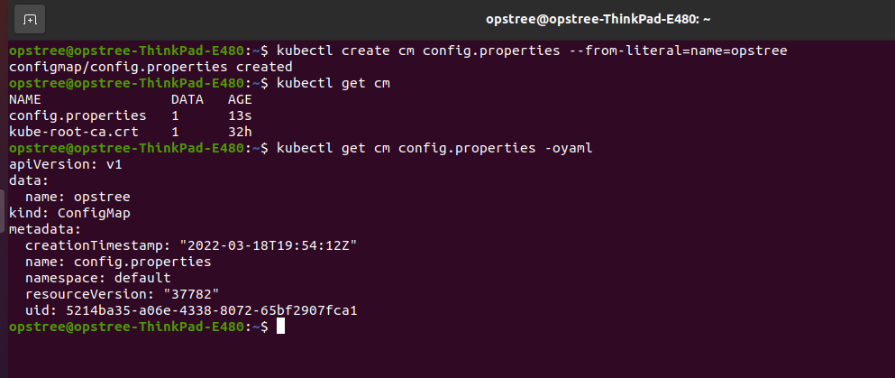 kubectl create cm config.properties --from-literal=name=opstree
