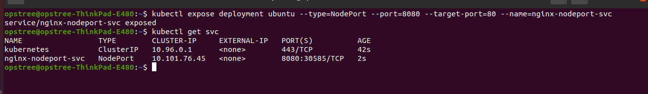 kubectl expose deployment ubuntu --type=NodePort --port=8080 --target-port=80 --name=nginx-nodeport-svc