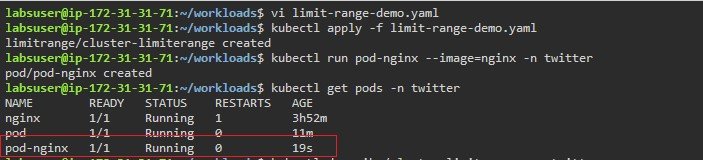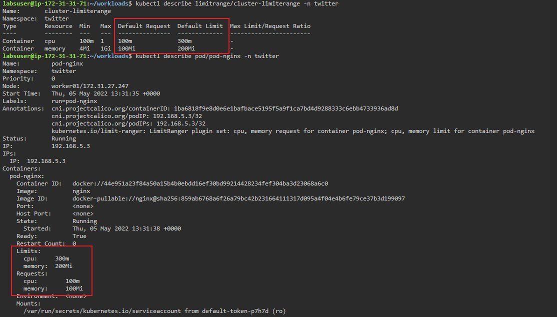 Please see the default entries at cluster-limitrange and pod-nginx that we have created without limits although it took the limits from limitrange.