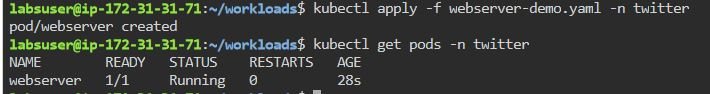 $ kubectl apply -f webserver-demo.yaml -n twitter