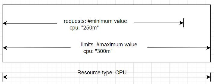 limits.cpu: "300m" #running containers can go up-to 300m CPU.