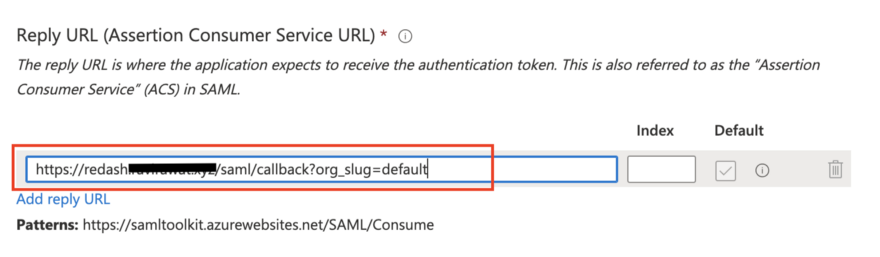 - https://discuss.redash.io/t/azure-ad-saml-reply-url/5823