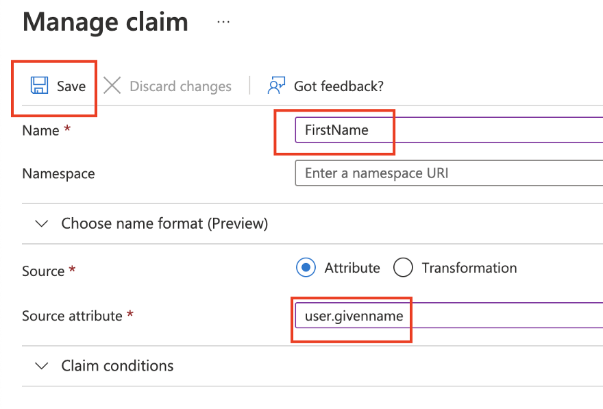 Step 14: Once you save for the FirstName claim, repeat Step 12 to create a new claim for a different source attribute.