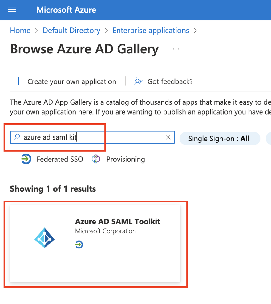 Step 5: Now, under the search section, search for azure ad SAML toolkit, and click on the first result as shown below