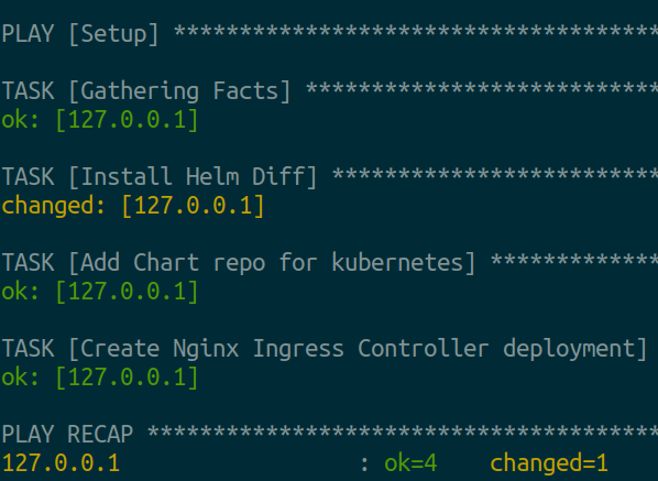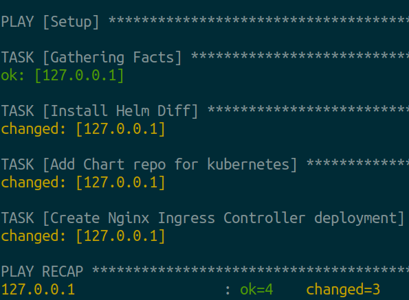 To set up this, we need to install the Helm plugin which will work with Ansible dry-run and check options and provide output.