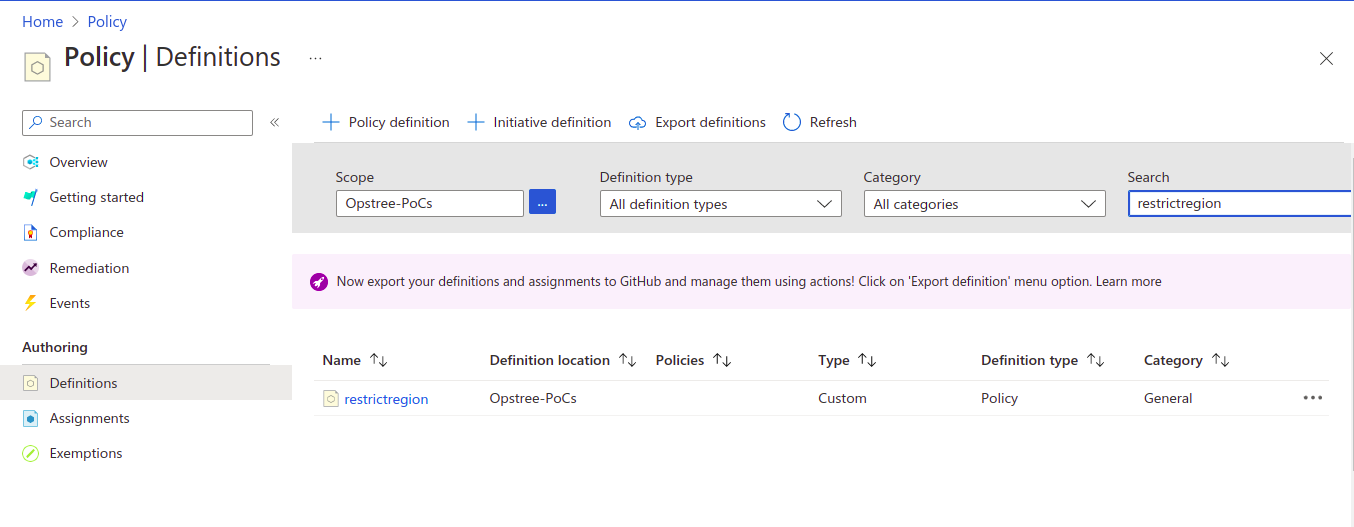 Apply the terraform module and let’s look for the policy definition and policy assignment that is created on the azure portal via the above code.