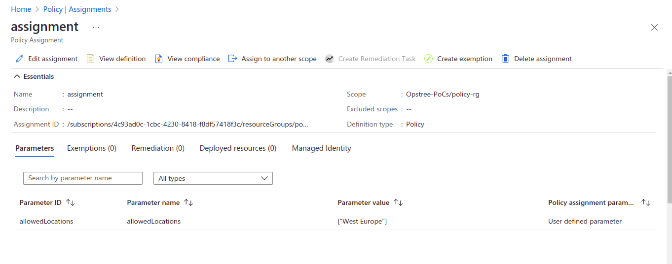 Cheers!!! It worked. You have created an Azure policy and assigned it to a specific scope.