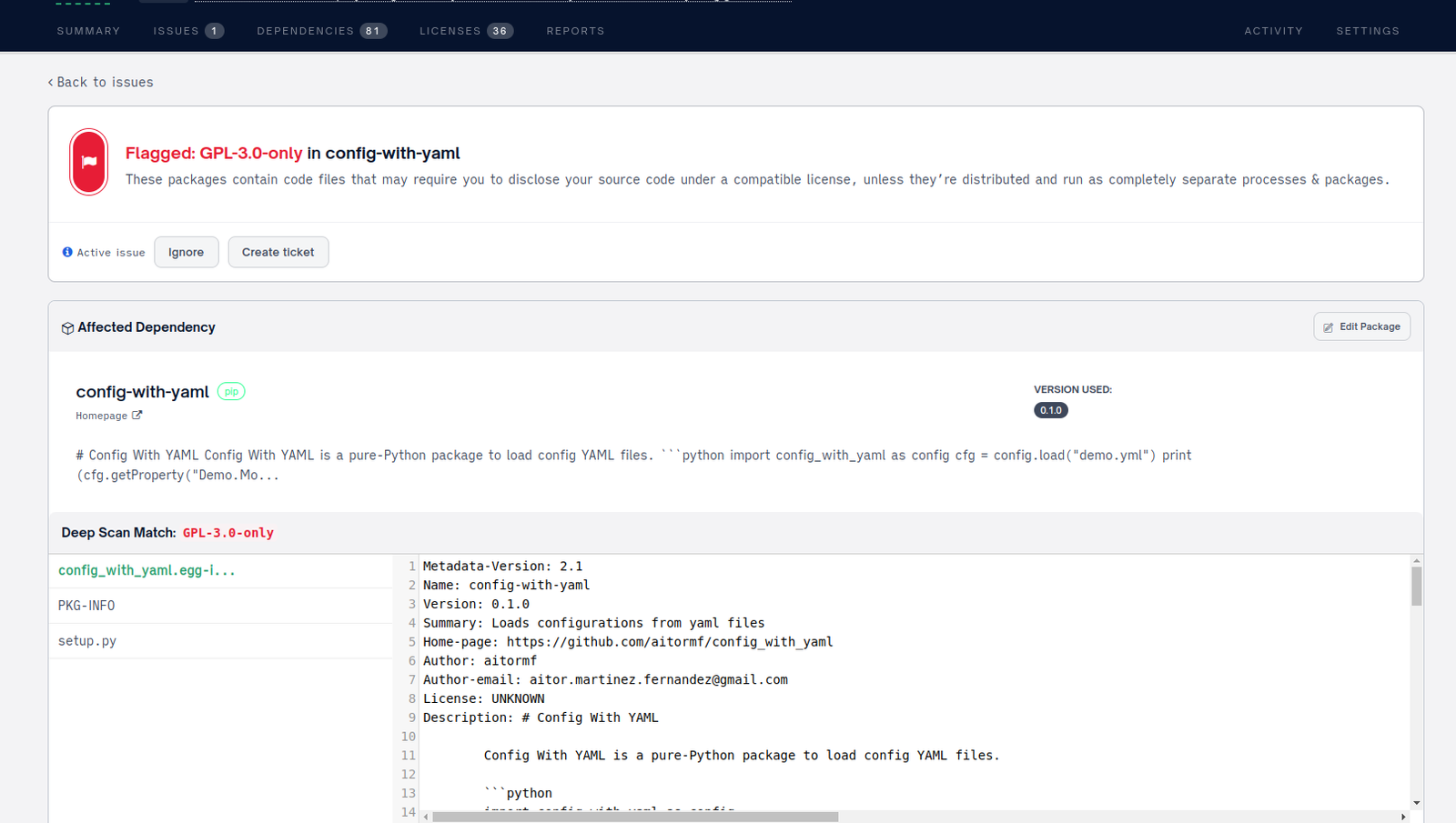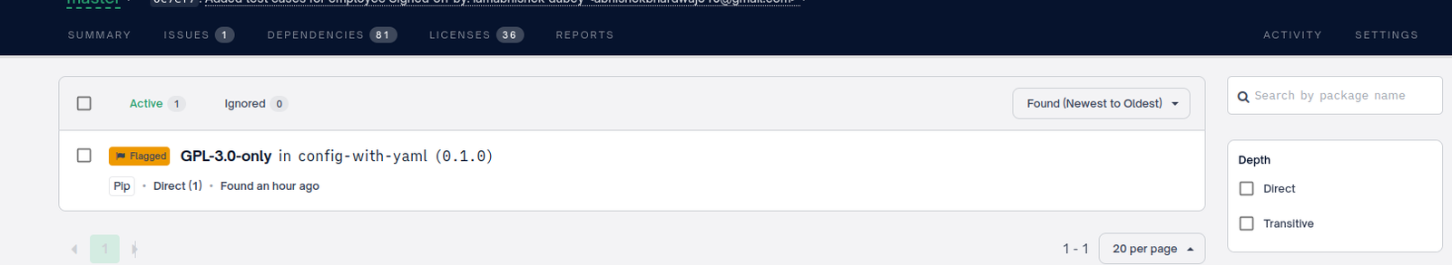 It is showing 81 Dependencies , 36 License also create Flagged dependencies.