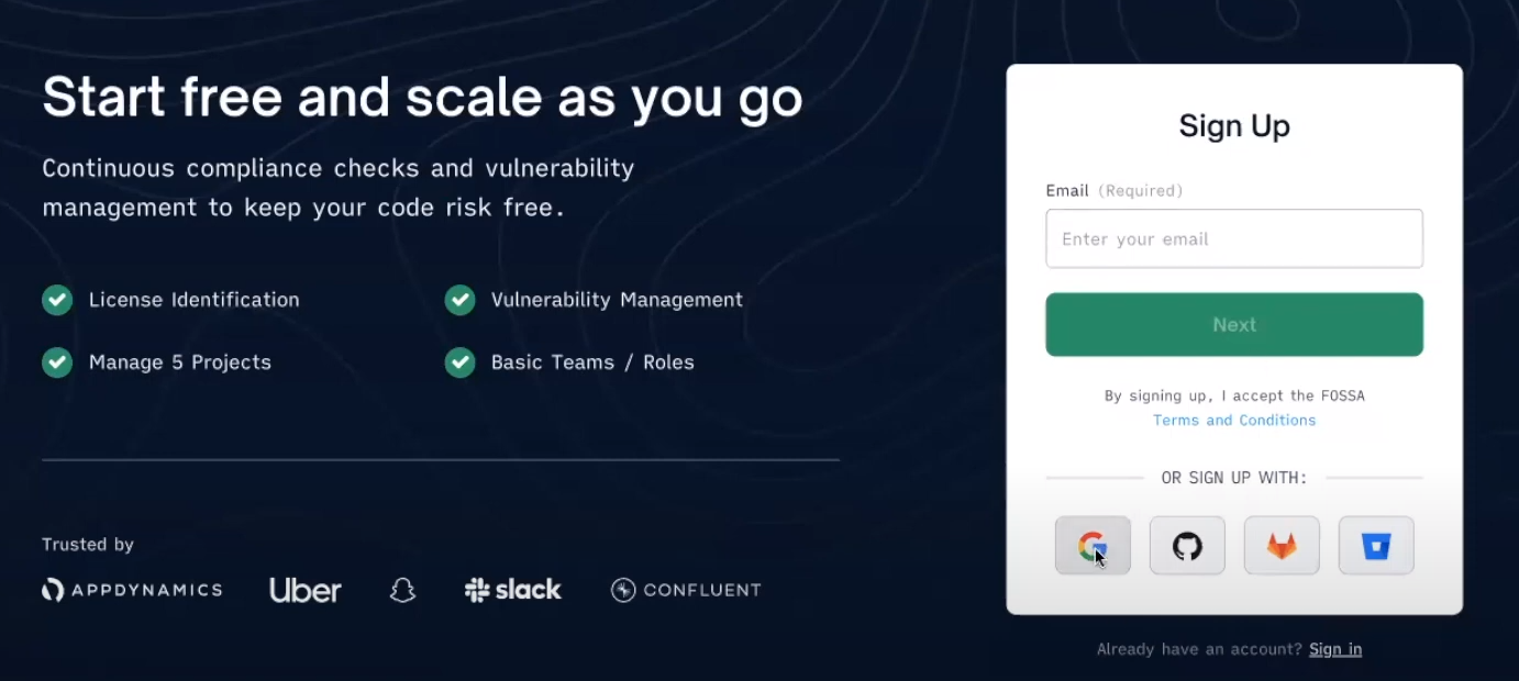 FOSSA helps you to manage your open-source components. FOSSA plugs into your development workflow to help your team automatically track, manage, and remediate issues with the open source you use to: