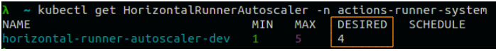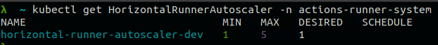 kubectl get HorizontalRunnerAutoscaler -n actions-runner-system
