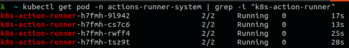 kubectl get pod -n actions-runner-system | grep -i "k8s-action-runner"
