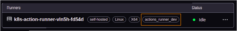 - Now, you should see actions runner pods on Kubernetes, which is also registered on GitHub. Check under Repository Settings > Actions > Runner.