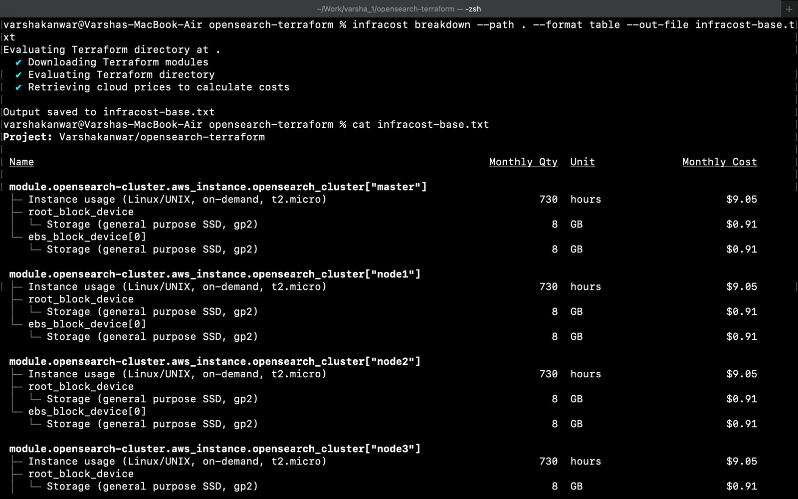 infracost breakdown --path . --format table --out-file infracost-base.txt