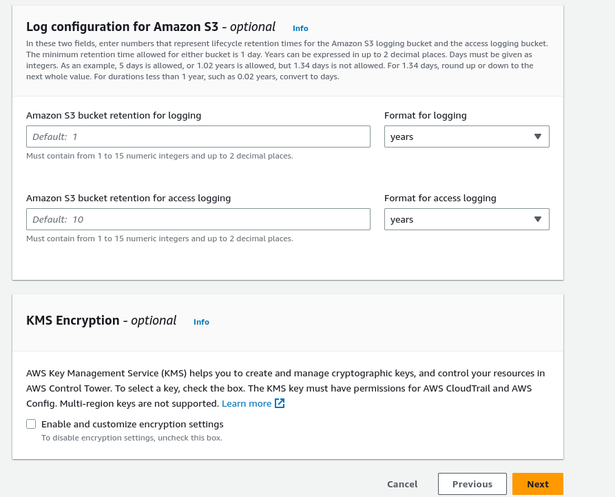 You can also customize the log retention policy under Log Configuration for Amazon S3. By default, it’s one year for standard account logging and 10 years for access logging.