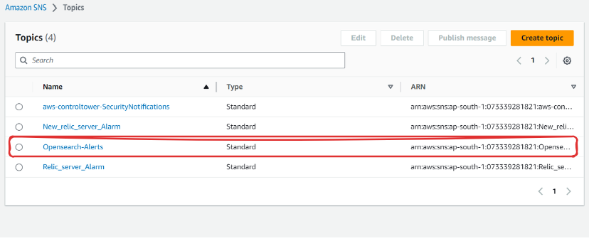 Remember to note down the Amazon Resource Name (ARN) of the newly created SNS topic.
